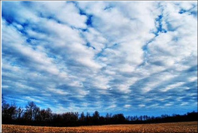 2) Altocumulus Opacus (CM=5), lapisan awan tebal dimana di dasarnya atau bawahnya masih terdapat/tampak kerutan atau lekukan-lekukan/kantong-kantong sehingga sinar bulan atau matahari tidak mampu menembusnya.